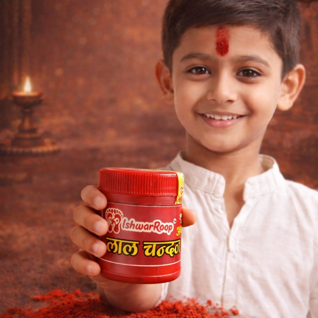 Ishwarroop Lal Chandan is a sacred and traditional red chandan powder, specially prepared for spiritual rituals, daily pooja, and chandan tikka application. Made from pure red sandalwood, this premium-quality chandan powder offers a rich natural color, smooth texture, and long-lasting freshness, making it ideal for tilak and religious ceremonies.