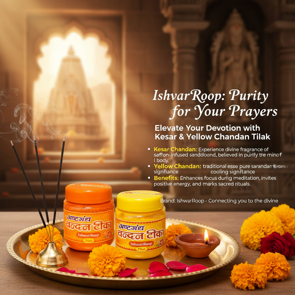 Free from harmful chemicals and artificial additives, IshwarRoop chandan is safe for everyday pooja, temple use, meditation, vrats, and festive ceremonies. Whether used as chandan tika for tilak or as sacred chandan in rituals, it reflects purity, faith, and timeless Indian tradition.