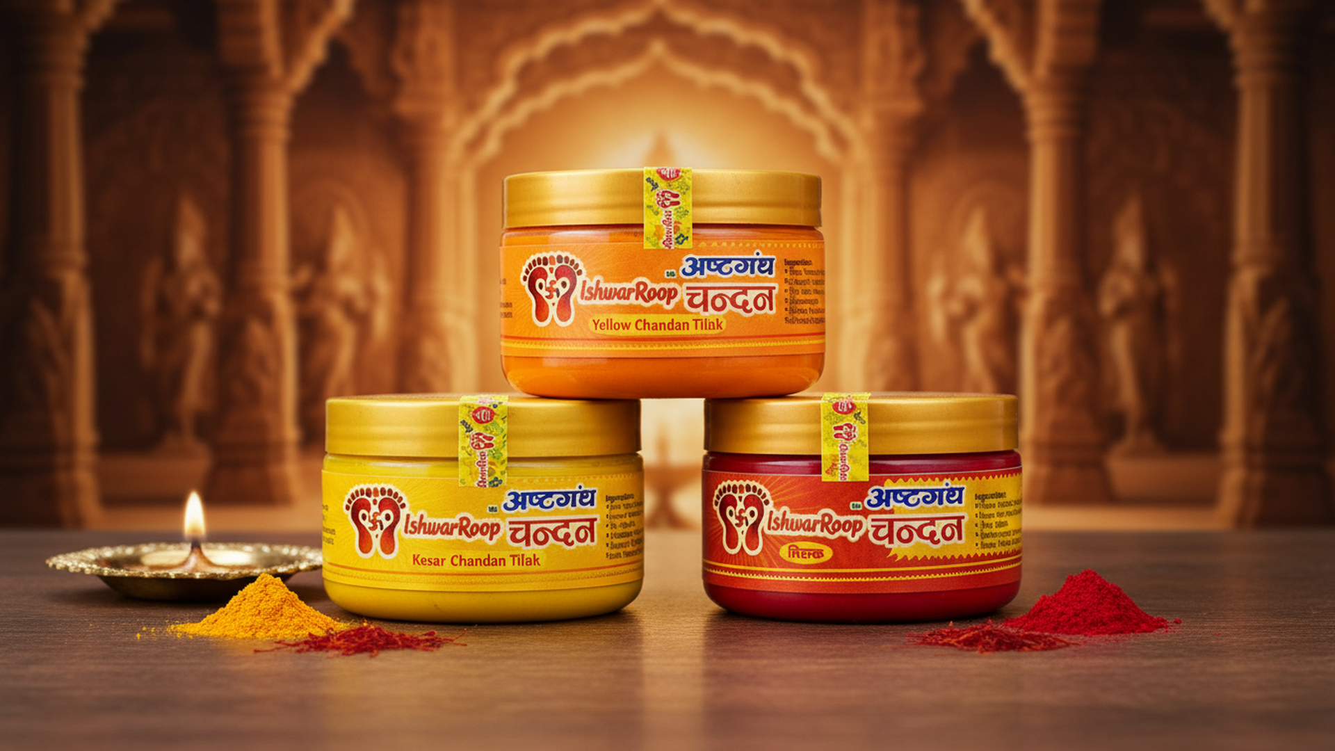 • Pack of 3 Chandan Tilak Paste includes Kesar, Red, and Yellow chandan, symbolizing devotion, positivity, and spiritual energy