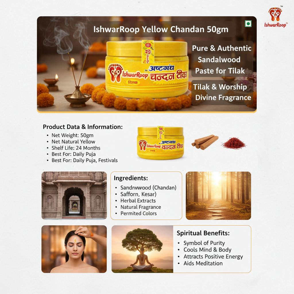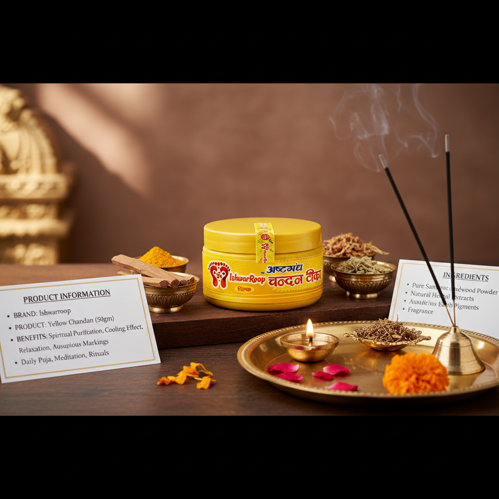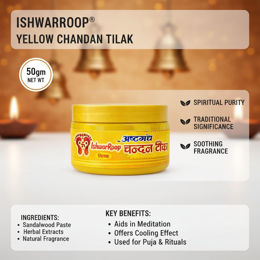 IshwarRoop Yellow Chandan Tilak is a pious offering, which is prepared using the best variety of yellow chandan and is designed particularly for pooja and meditation practices. Traditionally, this chandan Tilak is known to provide a pleasing odor with cooling sensations that help calm your mind during the meditation session. As being heavily used in temple rituals as well as other blissful occasions, IshwarRoop Yellow Chandan Tilak symbolizes purity, intelligence, and holy energies. The smooth touch, the convenience of application, and the long-lasting aroma in this tilak will give you a completely spiritual and traditional touch. Opt for IshwarRoop for a completely spiritual touch of the yellow chandan tilak.